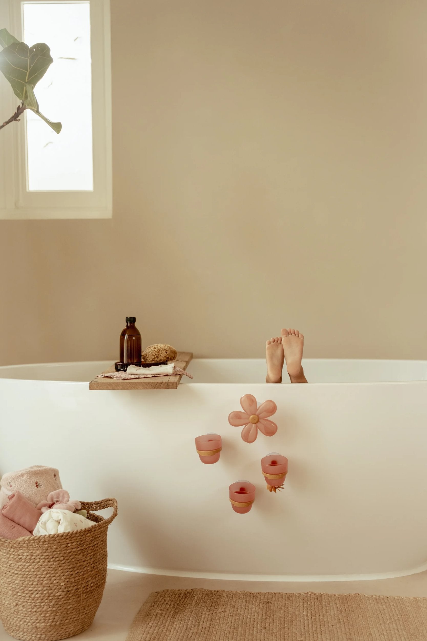 Unser neues Badespielzeug macht aus jedem Bad ein kleines Abenteuer. Gießen, stapeln, kleben oder angeln, jedes Mal ist anders.