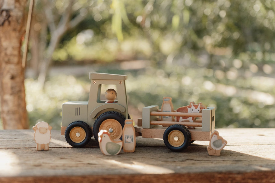 Von Umarmungen und Holzspielzeug bis hin zu Bettwäsche und Accessoires bringt jeder Gegenstand den Frieden und die Gemütlichkeit des Landwirtschaft in sich. Lassen Sie Ihren Kleinen mit dem Holz -Traktor spielen, mit dem süßesten Ackertier oder unter einer wunderbar weichen Decke schlafen.