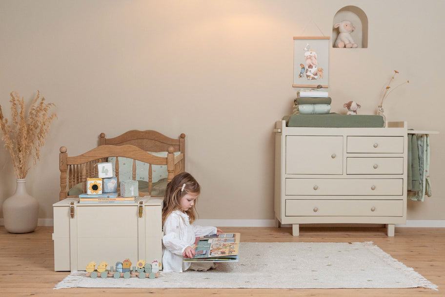 Willkommen auf der Farm! Mit dem Little Farm Thema von Little Dutch Entdecken Sie Ihren Kleinen in der Welt der süßen Nutztiere, gemütlichen Ställe und endlosen Spielen. Die Kollektion ist voller weicher Stoffe, natürlicher Töne und verspielten Drucke, perfekt für das Baby- und Kinderzimmer.