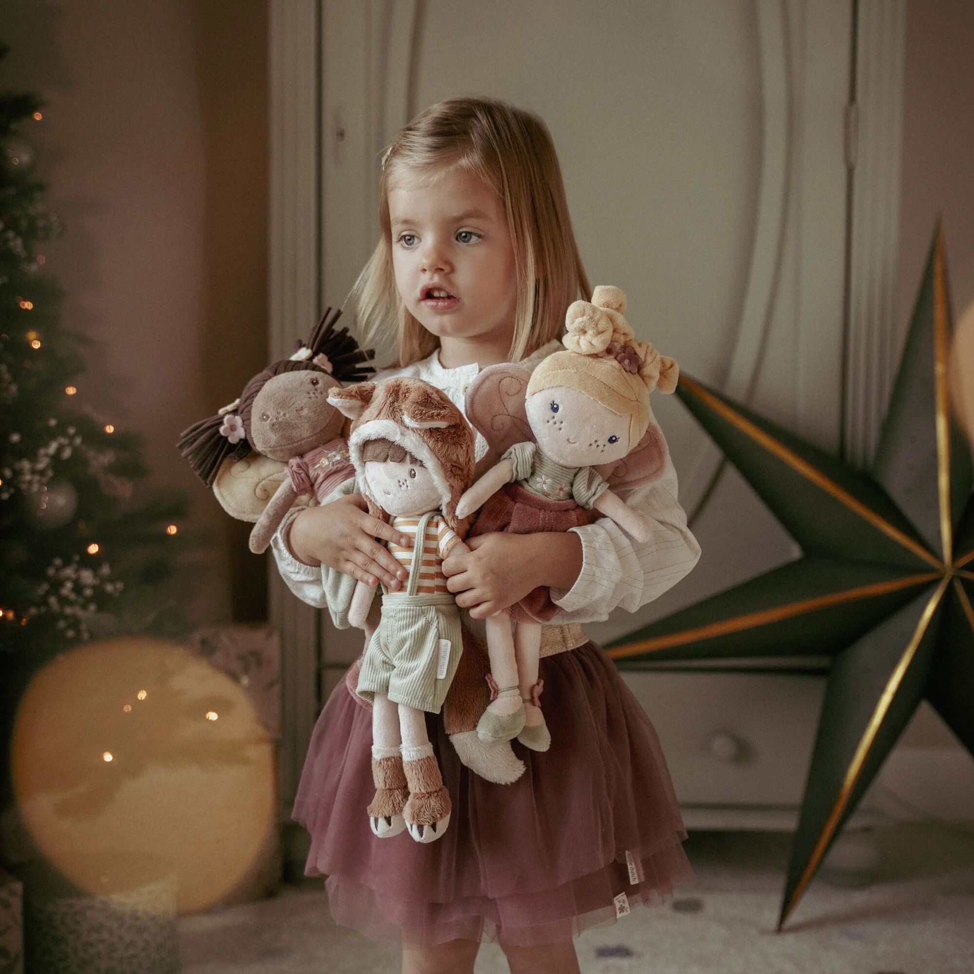 Lernen Sie Forest Friend Sam kennen, eine weiche Plüschpuppe in einem niedlichen Fuchskostüm. Zusammen mit dem Füchschen nimmt Sam Sie mit auf ein Abenteuer im Wald, wo sie mit ihren Tierfreunden allerlei Waldschätze sammeln, wie Pilze, Eicheln und Tannenzapfen. Sam ist kuschelig und perfekt für kleine Hände. Sein liebes Gesicht und das detaillierte Outfit machen ihn zu einem tollen Spielkameraden und einer schönen Dekoration für das Kinderzimmer. Erleben Sie die schönsten Abenteuer im Wald mit Forest Friend Sam!