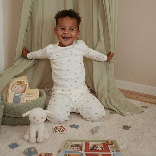 Forest Treasures: Entdecken Sie verborgene Schätze des Waldes mit diesem bezaubernden Pyjama. Mit einer Waffelstruktur und einem wunderschönen Druck voller kleiner Waldfunde spiegelt er die Magie einer Erkundungstour durch den Wald wider. Das Hemd und die Hose dieses Sets passen perfekt zur passenden Bettwäsche. Hergestellt aus Bio-Baumwolle für zusätzliche Weichheit und wunderschön verpackt in einer schönen Geschenkbox. Erhältlich in den Größen 62/68, 74/80, 86/92 und 98/104.