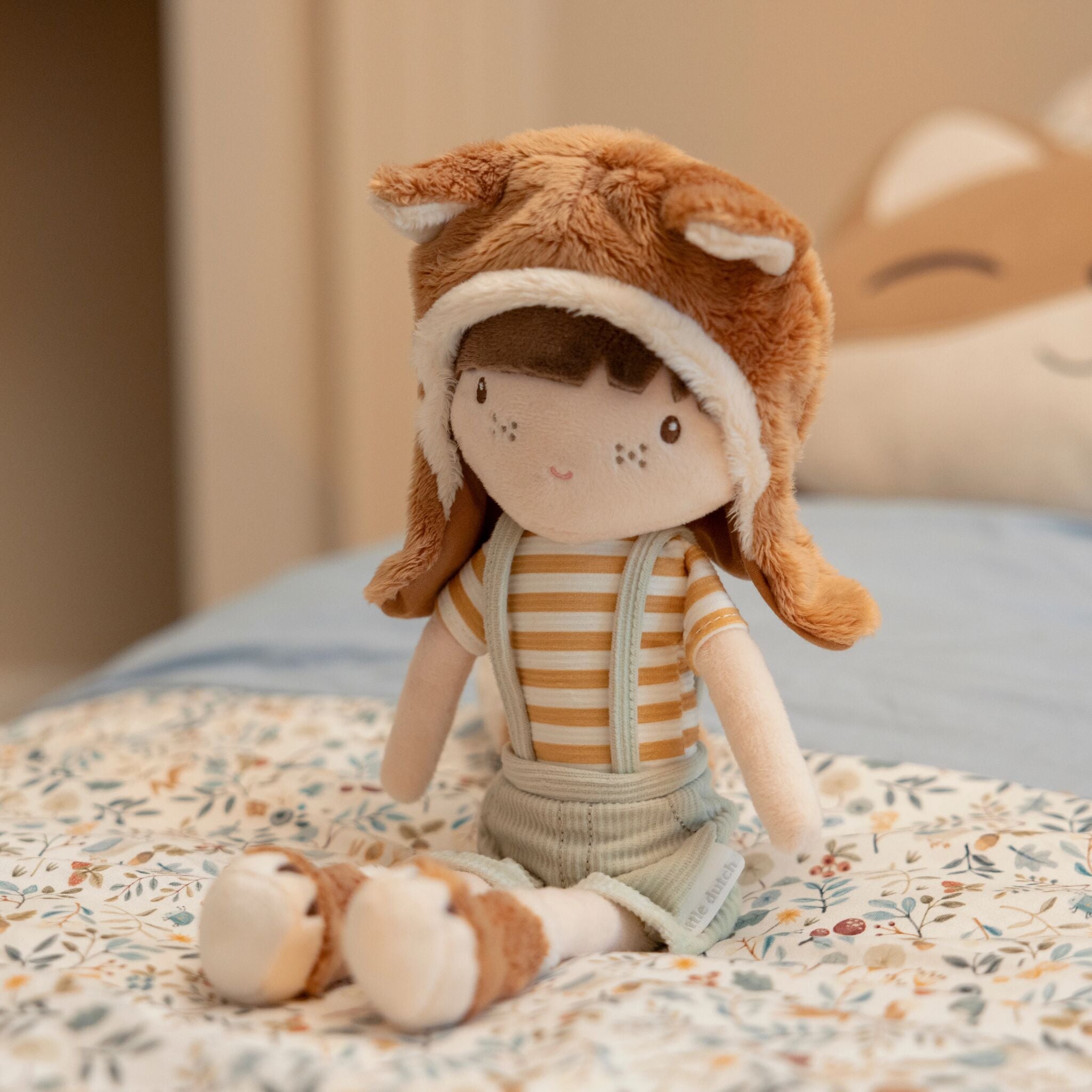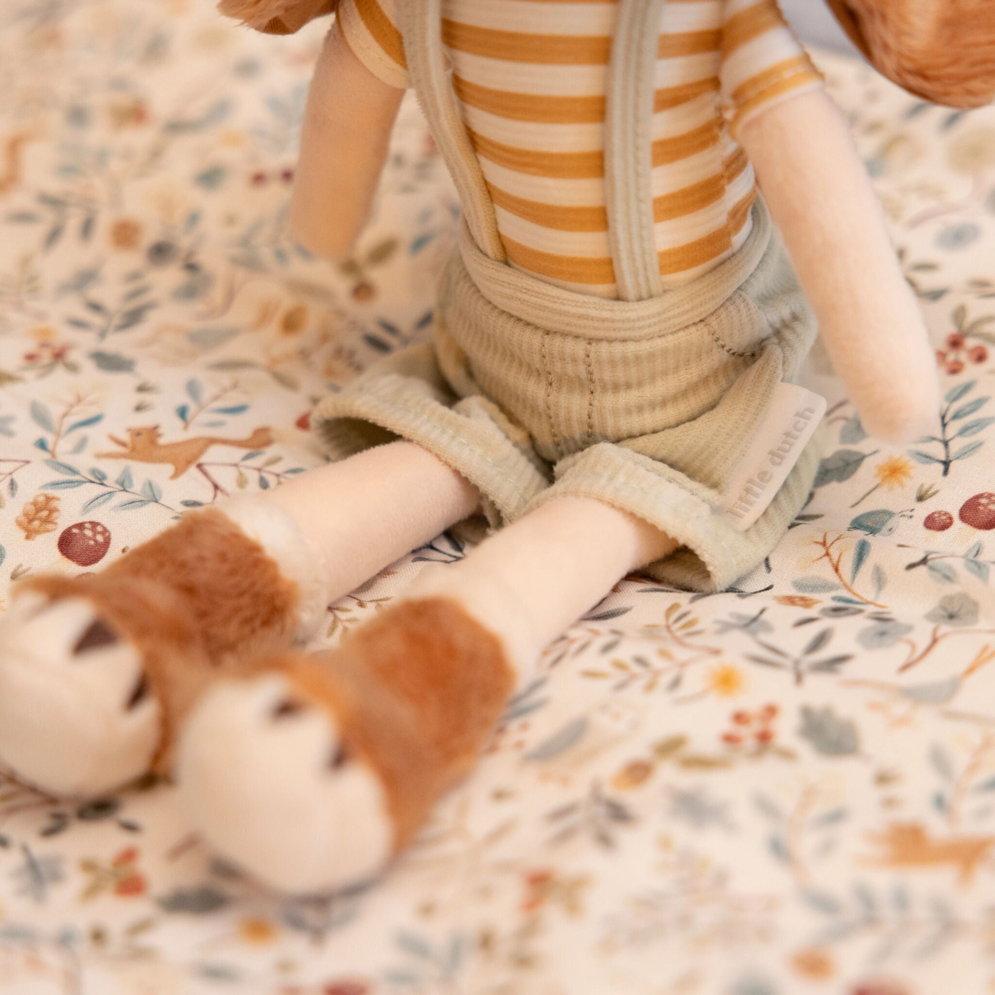 Lernen Sie Forest Friend Sam kennen, eine weiche Plüschpuppe in einem niedlichen Fuchskostüm. Zusammen mit dem Füchschen nimmt Sam Sie mit auf ein Abenteuer im Wald, wo sie mit ihren Tierfreunden allerlei Waldschätze sammeln, wie Pilze, Eicheln und Tannenzapfen. Sam ist kuschelig und perfekt für kleine Hände. Sein liebes Gesicht und das detaillierte Outfit machen ihn zu einem tollen Spielkameraden und einer schönen Dekoration für das Kinderzimmer. Erleben Sie die schönsten Abenteuer im Wald mit Forest Friend Sam!