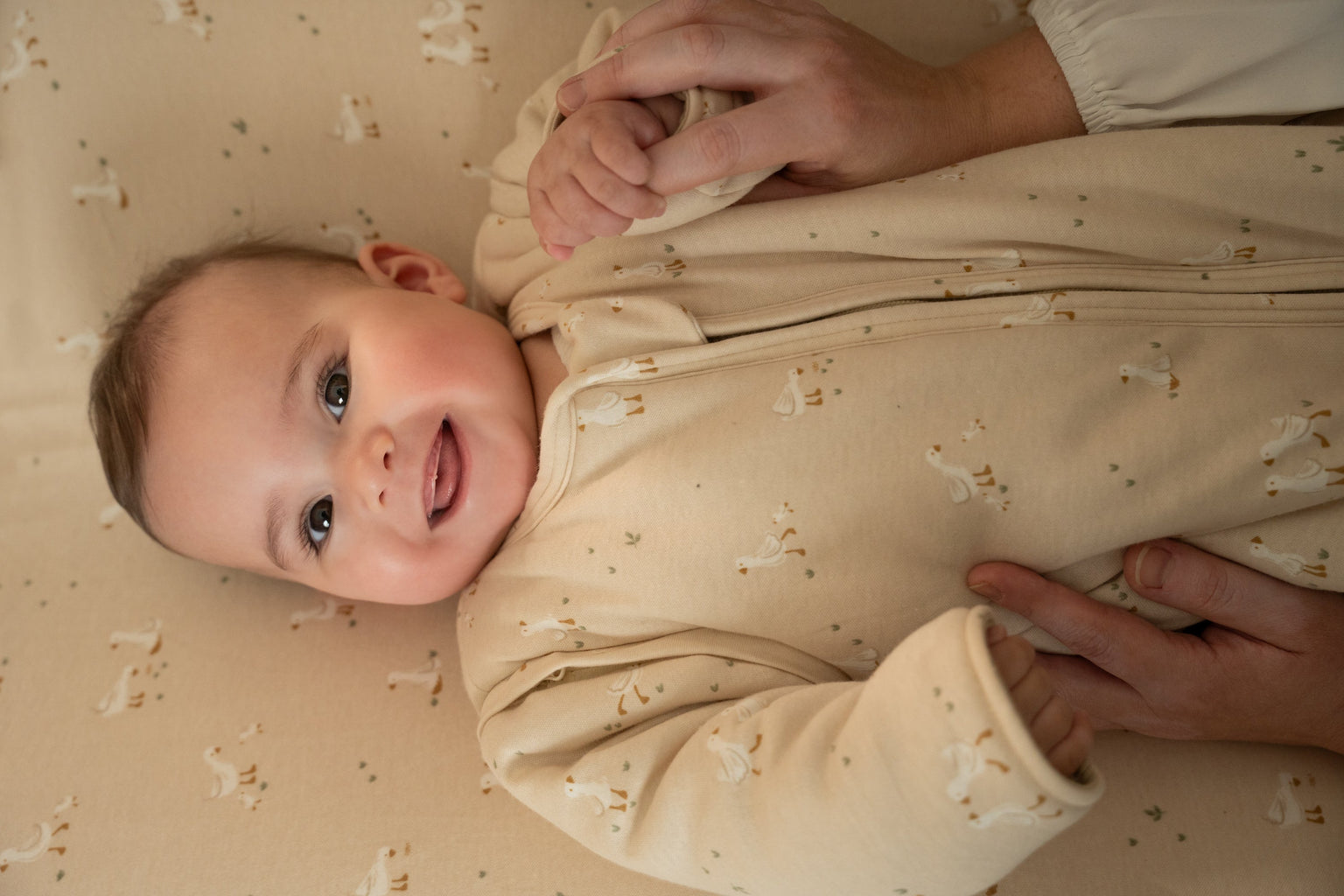 Une gigoteuse bien ajustée est tout aussi importante que son indice TOG. Elle ne doit pas être trop lâche au niveau du cou et des bras, afin que bébé ne puisse pas glisser dedans.