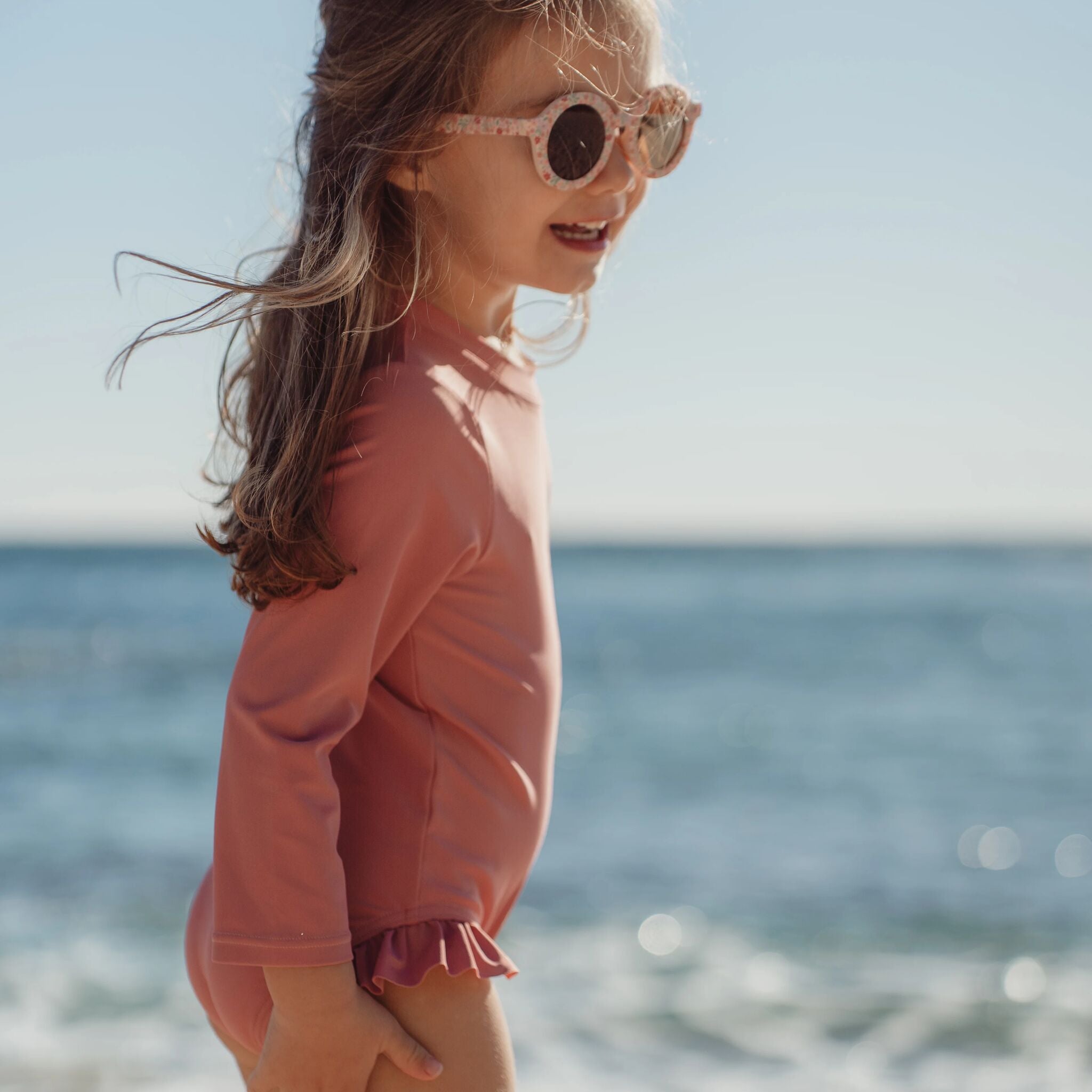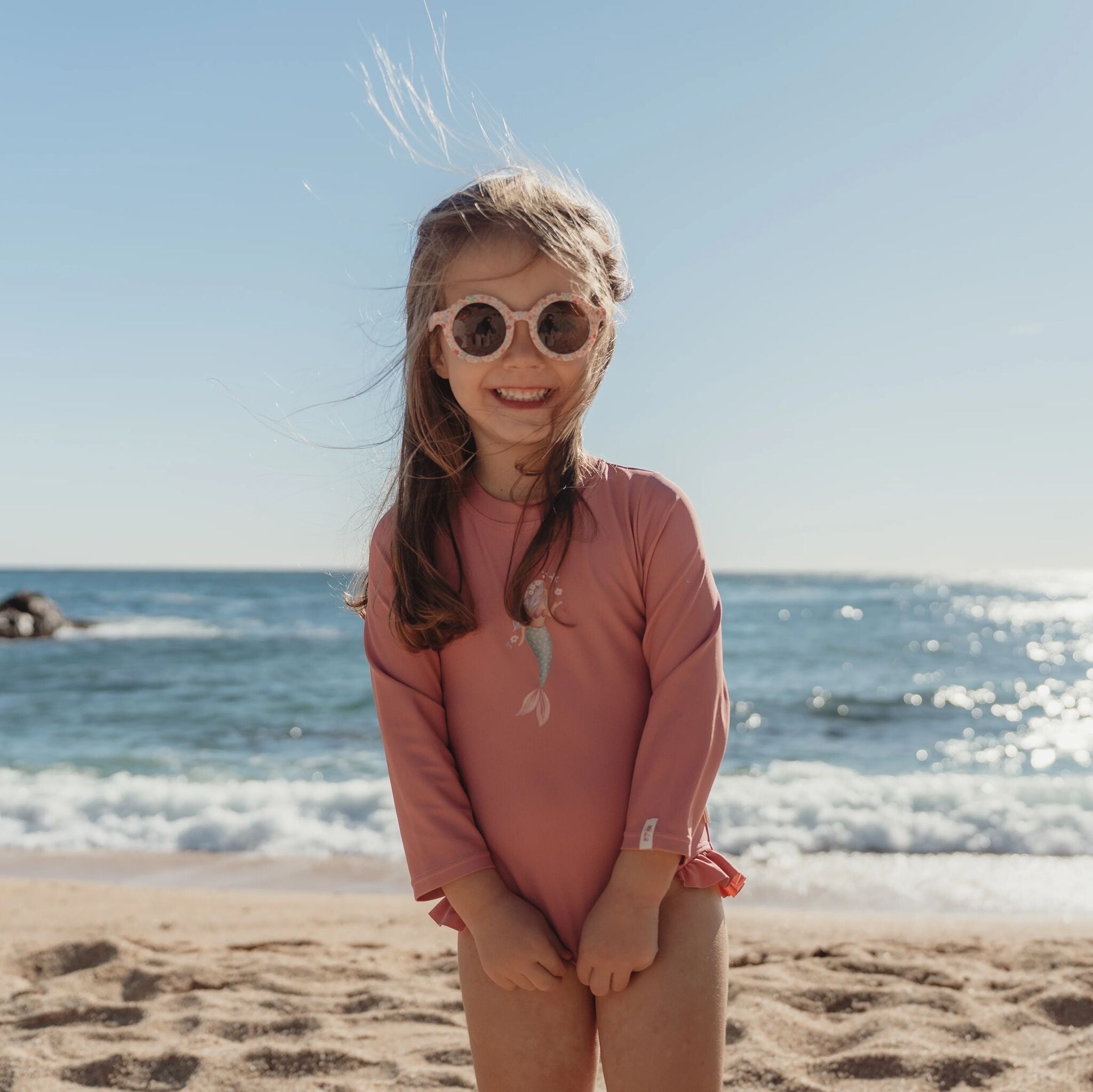 Ga op avontuur in het roze badpak met lange mouwen Dreamy Pink. Op zoek naar het perfecte badpak voor zonnige dagen aan zee of spetterpret in het zwembad? Dit badpak heeft een zachte roze tint met een subtiele print van een zeemeermin. De lange mouwen en de geïntegreerde UPF40+ bescherming zorgen ervoor dat de gevoelige huid van je kindje beter beschermd is tegen de zon. Zo kan jouw kleintje onbezorgd genieten van buiten spelen, zwemmen en zandkastelen bouwen. Geen gedoe met ritsen die vast komen te zitten in lange, natte haren – dit badpak is voorzien van drukknopen op de rug, waardoor aan- en uitkleden makkelijk en haarvriendelijk is. Voor de kleinste maatjes (62/68 en 74/80) is er een extra handige functie: drukknopen bij het kruis. Zo kun je snel een luier verschonen zonder het hele badpak uit te trekken. De grotere maten (86/92 en 98/104) hebben dit niet, wat zorgt voor een strakke, comfortabele pasvorm voor actieve peuters. Vergeet de zonnebrandcrème niet om je kleintje te beschermen.