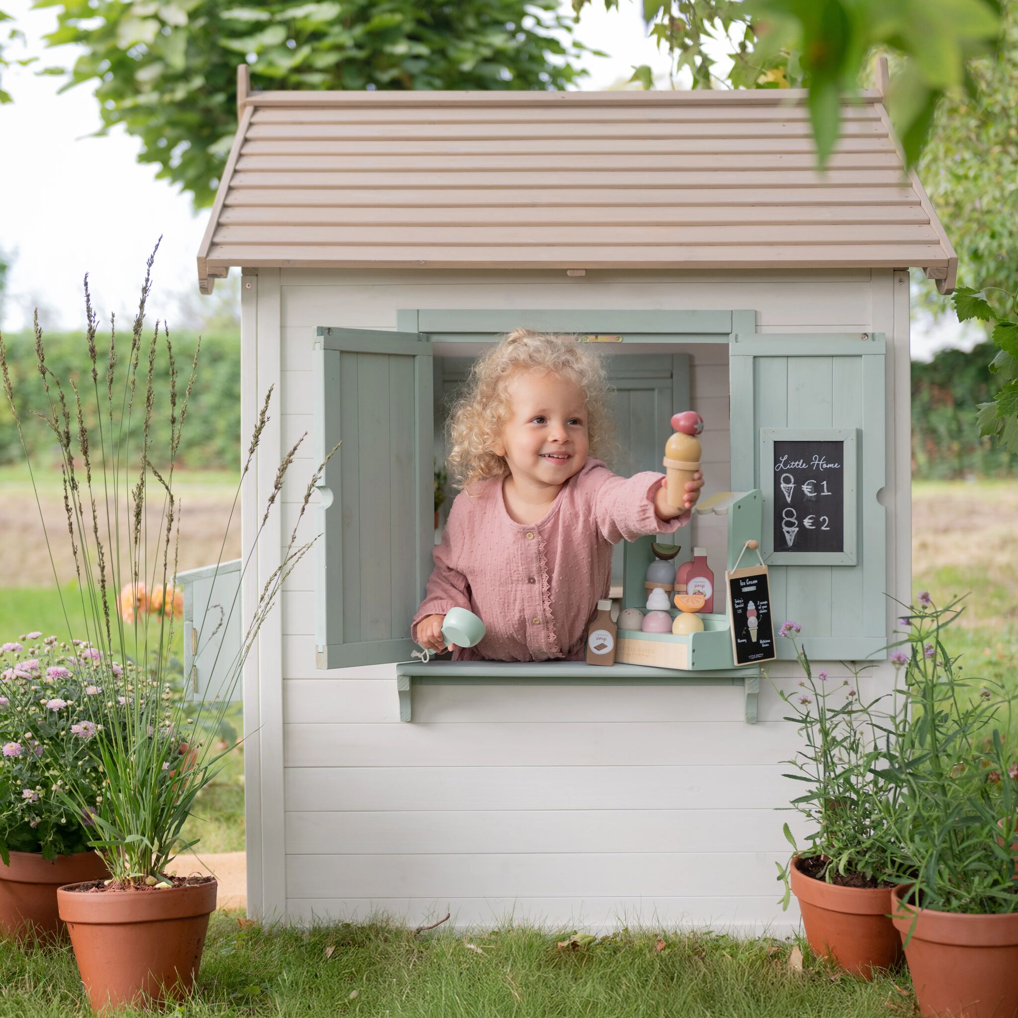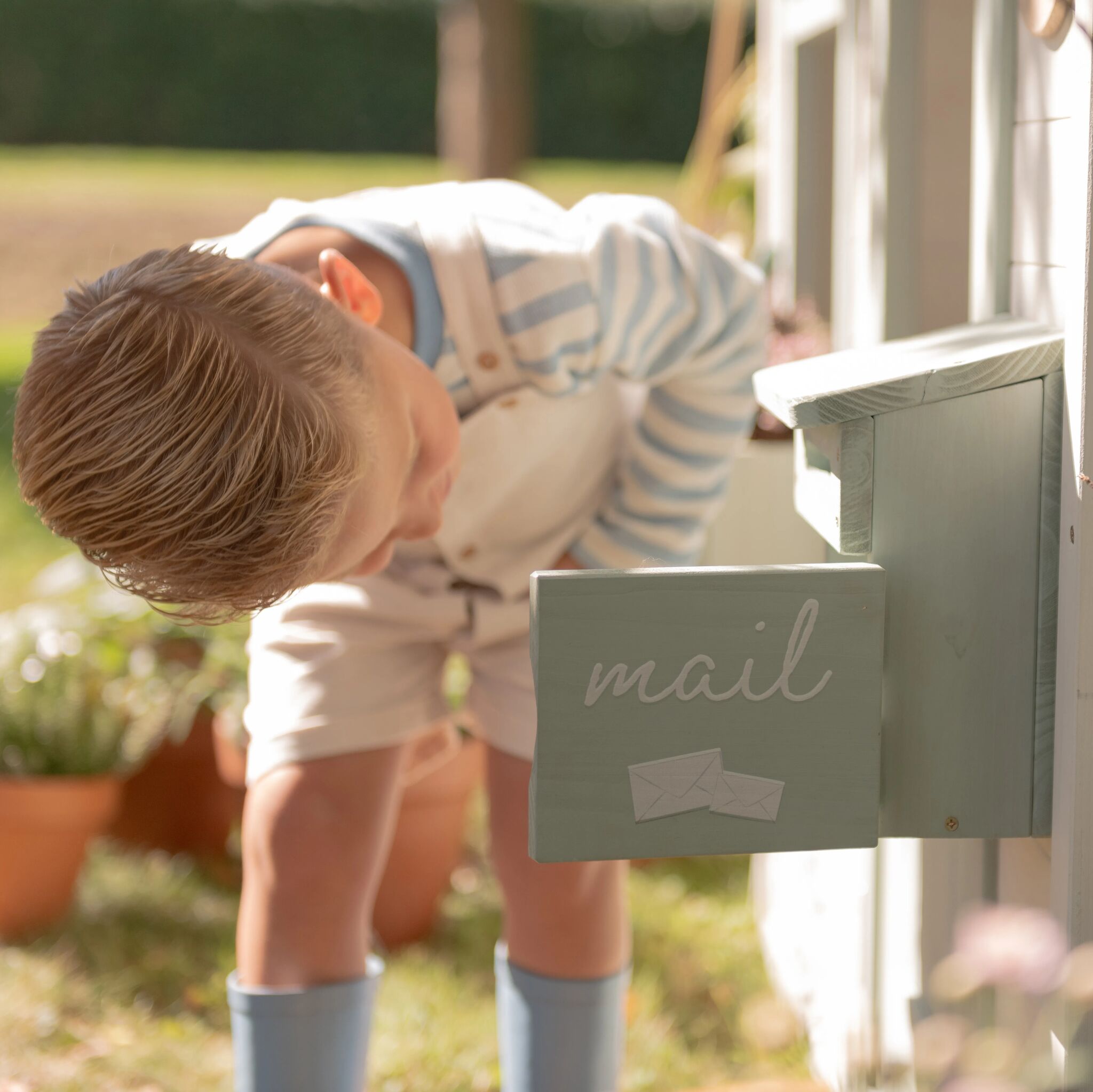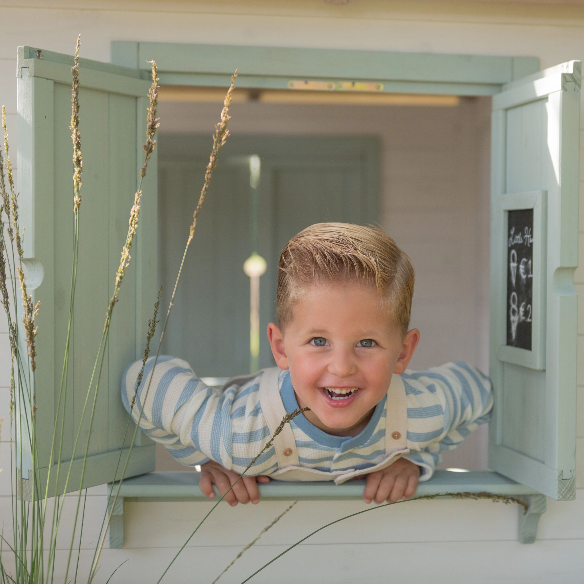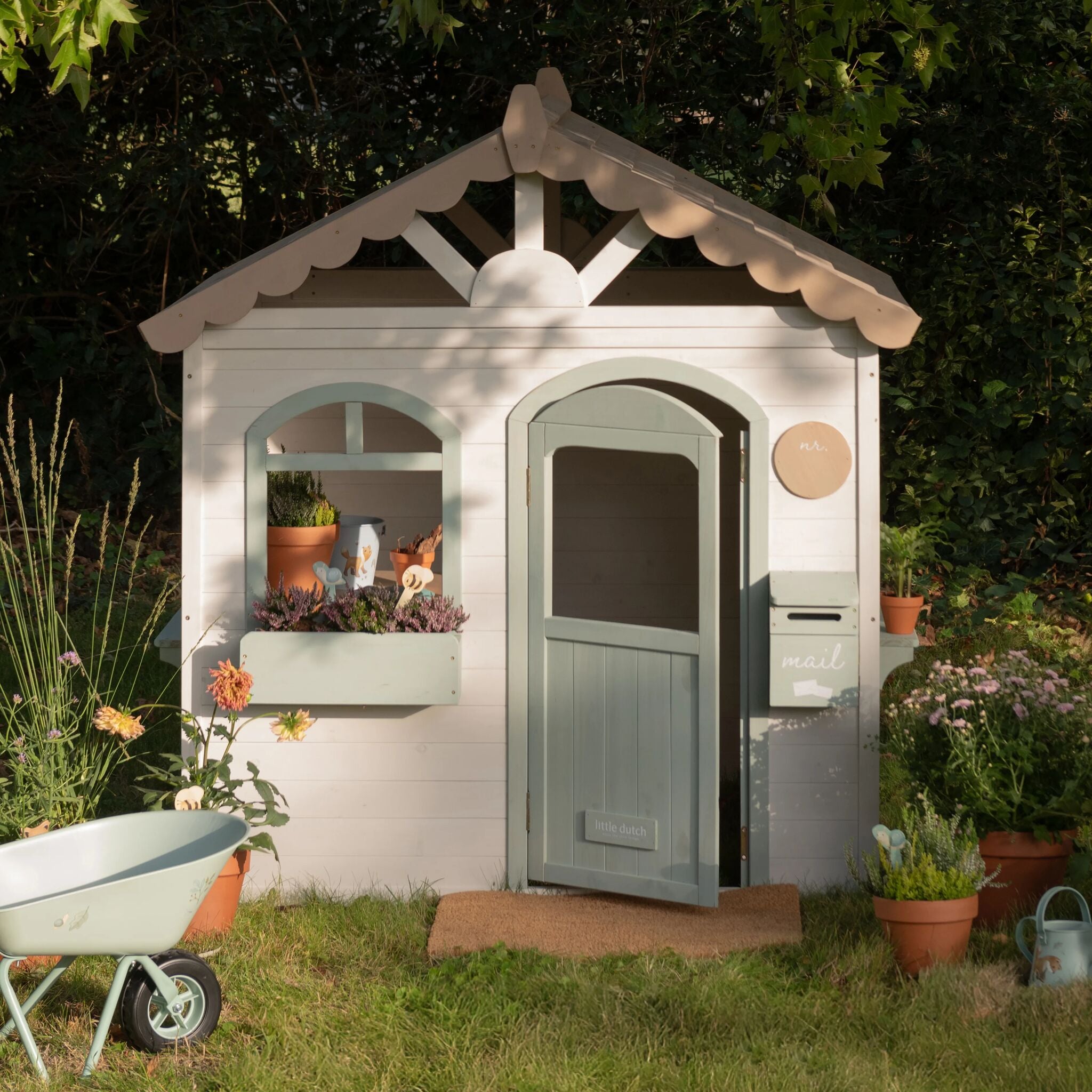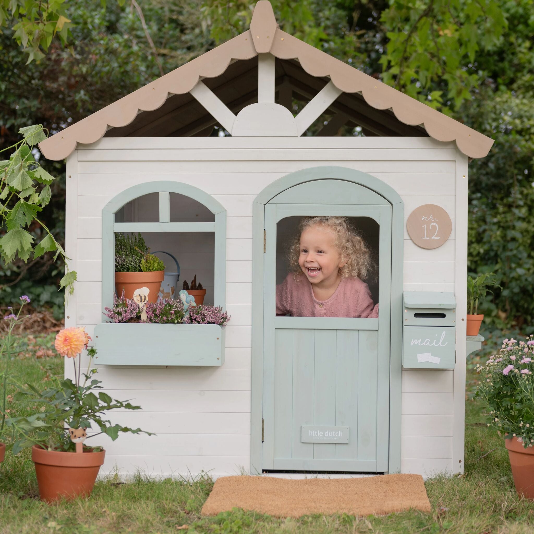 Stap binnen in een wereld vol fantasie met dit houten speelhuisje in zachte, neutrale tinten. De ramen met luikjes, het bloembakje en de brievenbus nodigen uit tot eindeloos rollenspel. Gemaakt van hout, perfect voor zonnige dagen vol avontuur in de tuin. Een knus huisje waar elk kind zich thuis voelt.